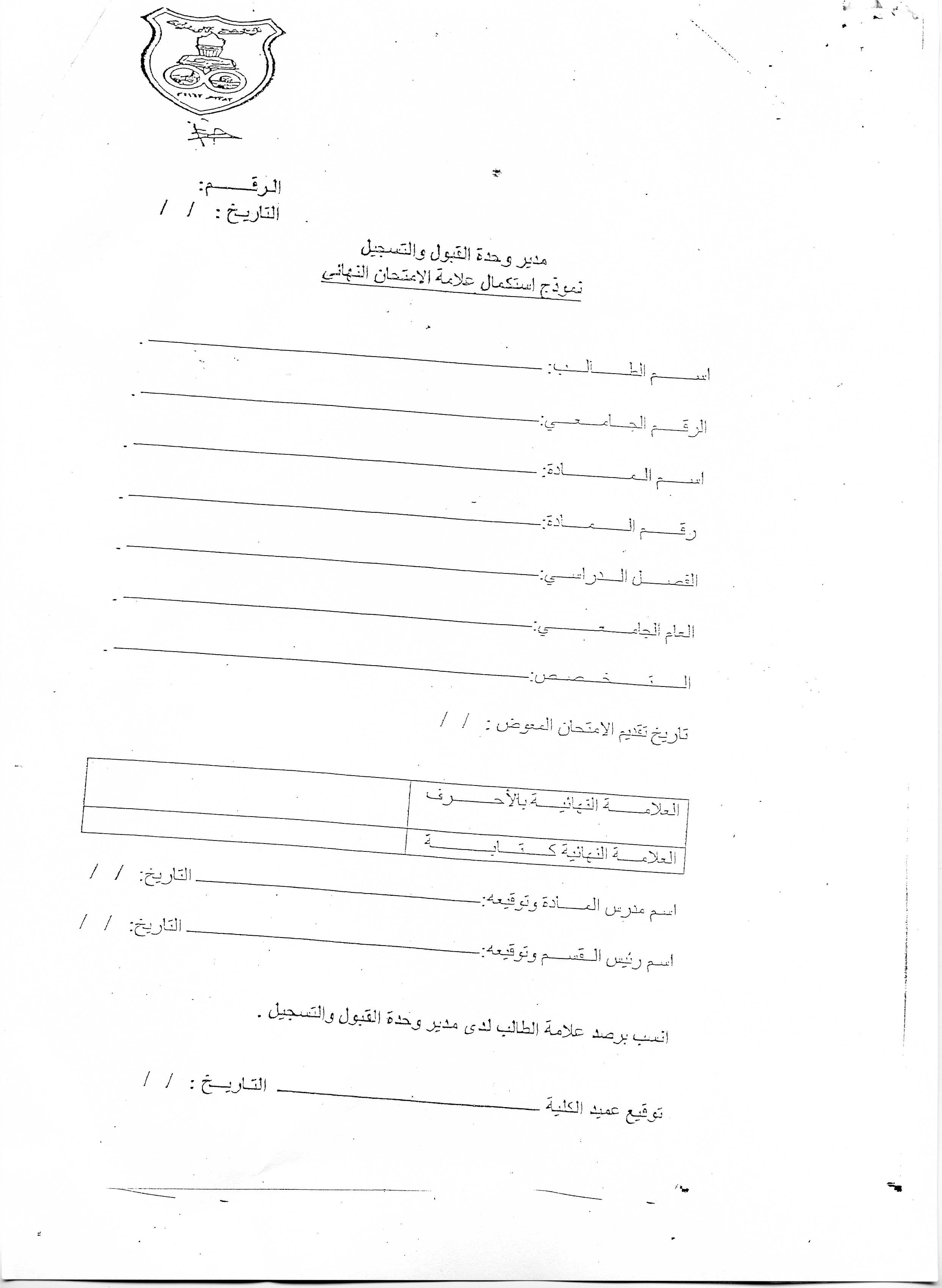 نموذج استكمال علامةالامتحان النهائي