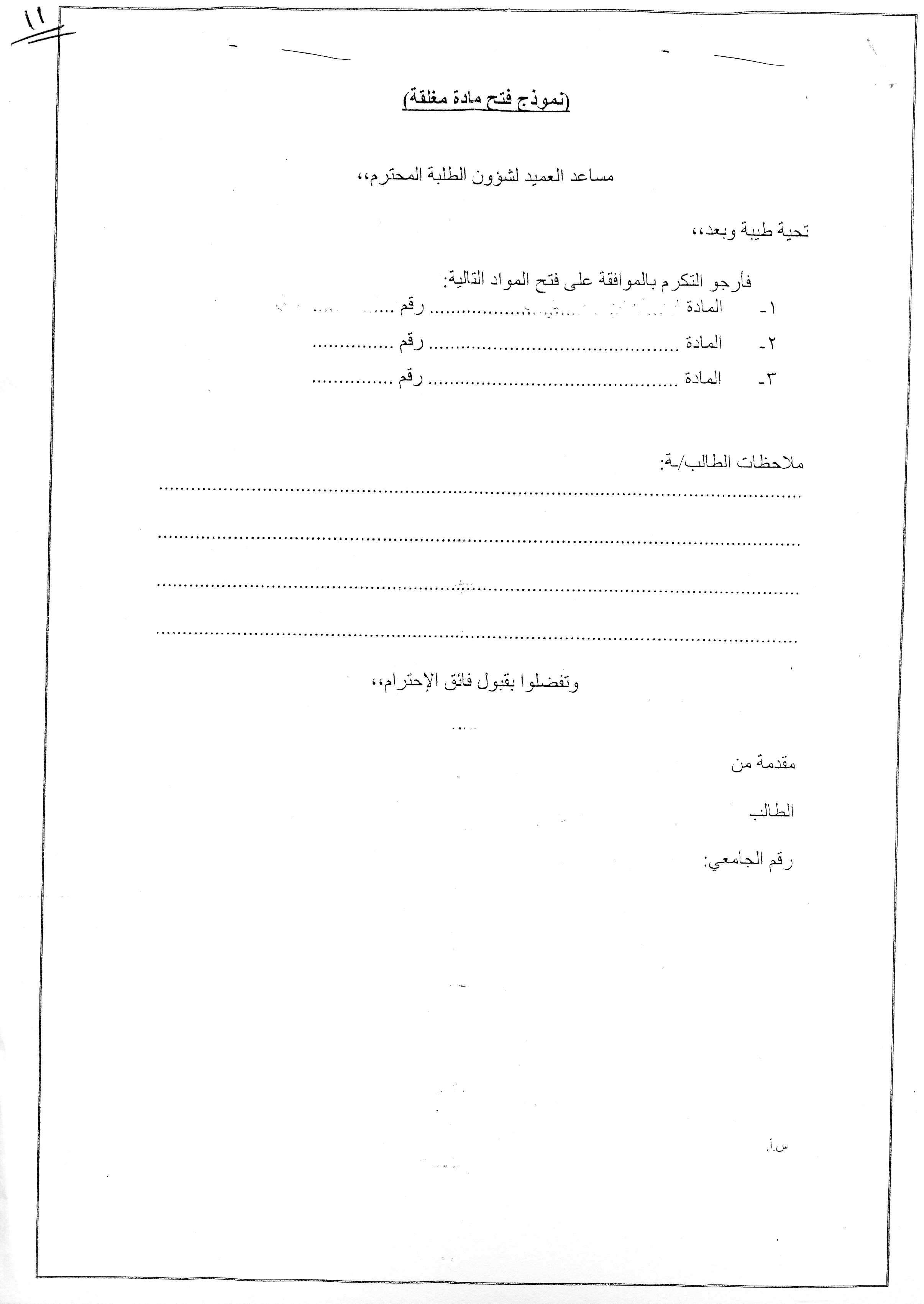 نموذج فتح مادة مغلقة - مساعد العميد لشؤون الطلبة